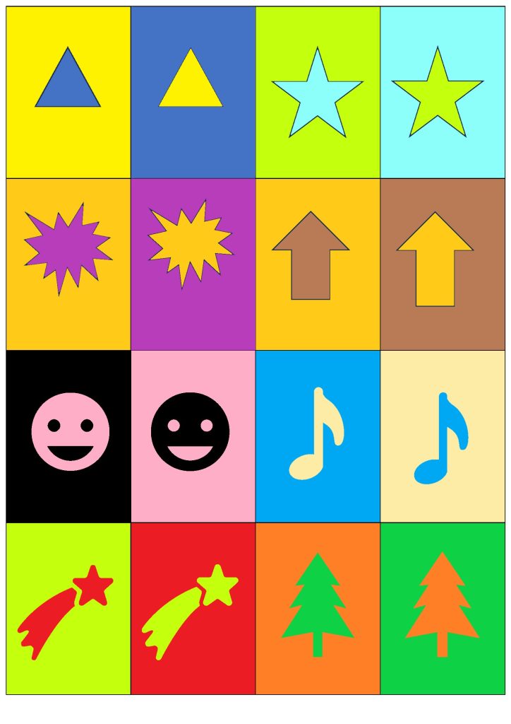 Dibuja figuras simples por parejas, coloréalas invirtiendo la figura y el fondo.