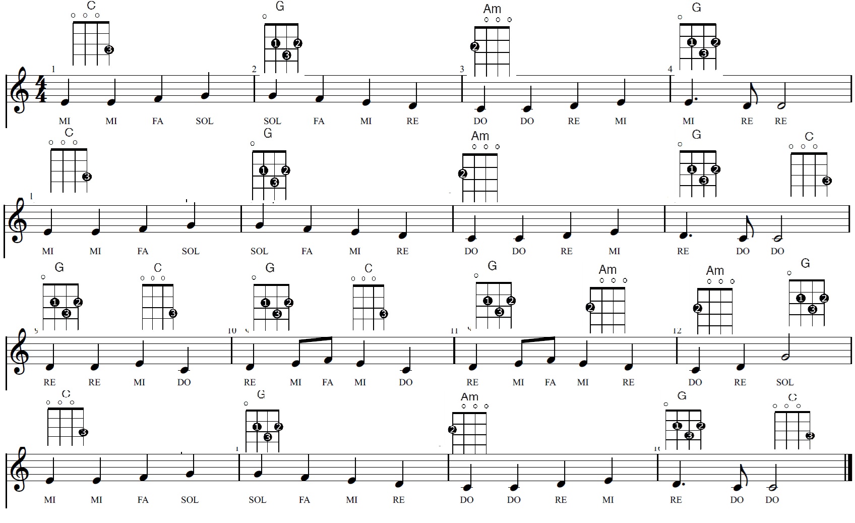 Adaptado para ukelele, melodía y acordes.